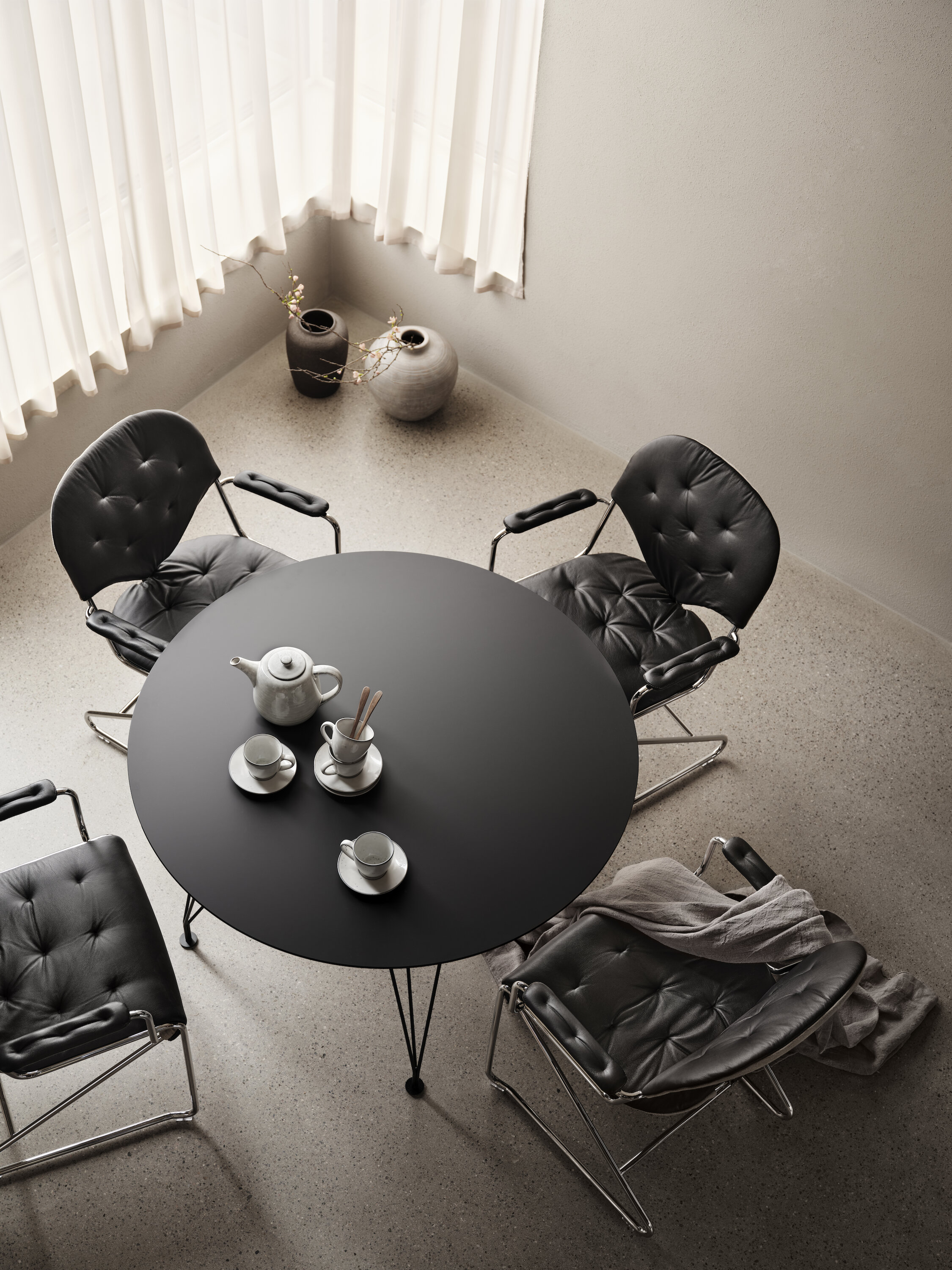 A classic café table, perfect to use in smaller spaces or to complement other sizes.